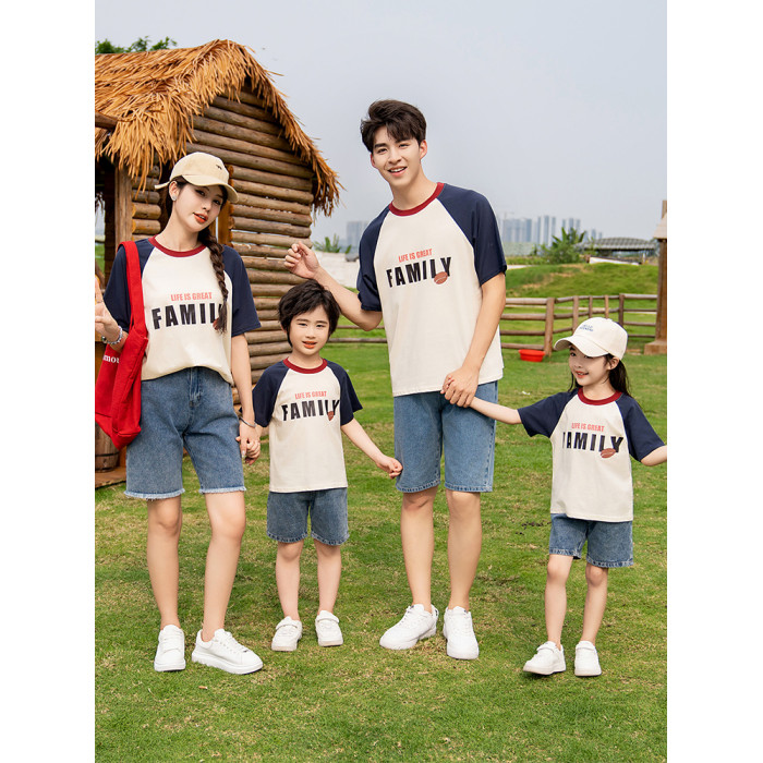 不一樣的親子裝t恤短袖套裝一家三口2025新款母女母子四口夏天季