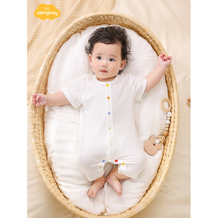 Aengbay嬰兒連體衣夏季短袖哈衣新生兒家居服半袖睡衣寶寶衣服夏