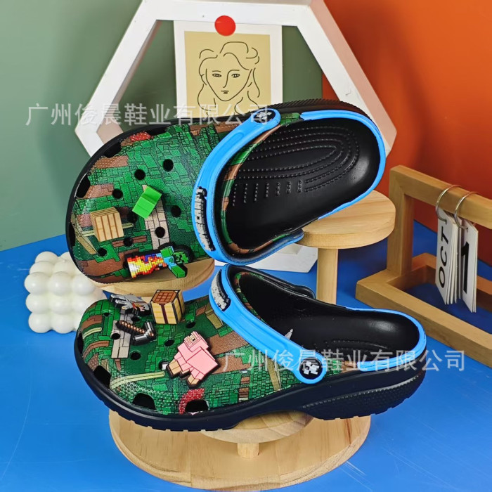 cross聯名新款洞洞鞋我的世界三代親子沙灘兒童卡通可愛時尚