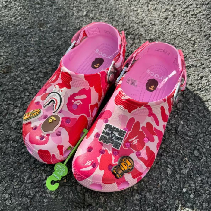2025新款CroLcs卡家猿人頭迷彩印花洞洞鞋聯名款卡通潮流情侶拖鞋