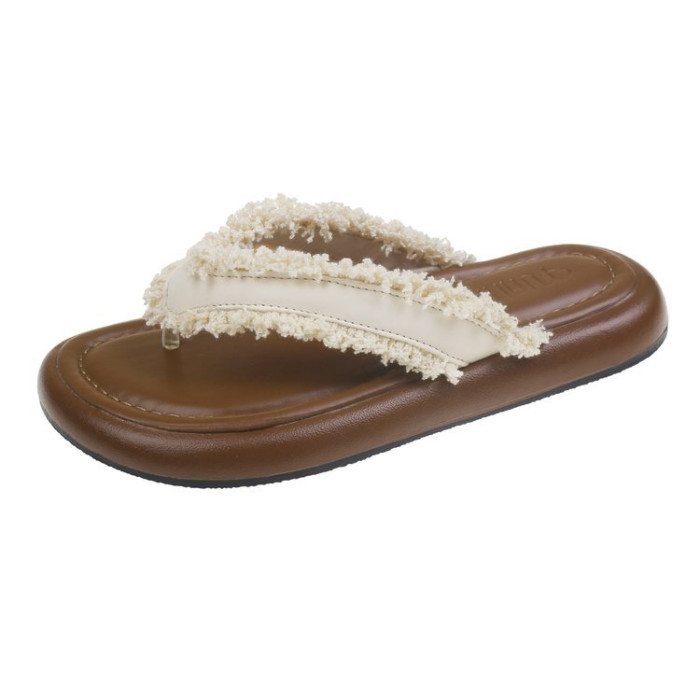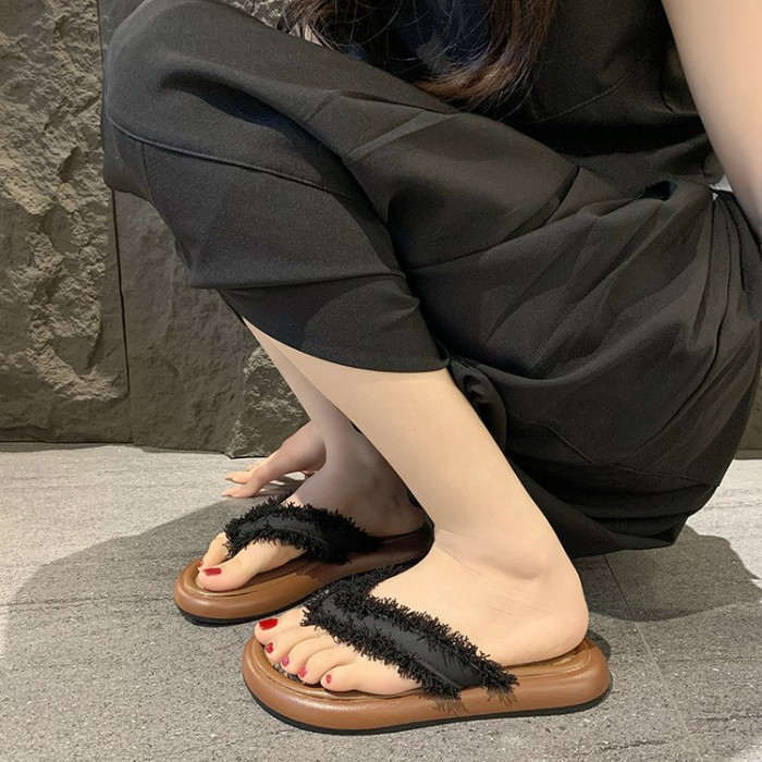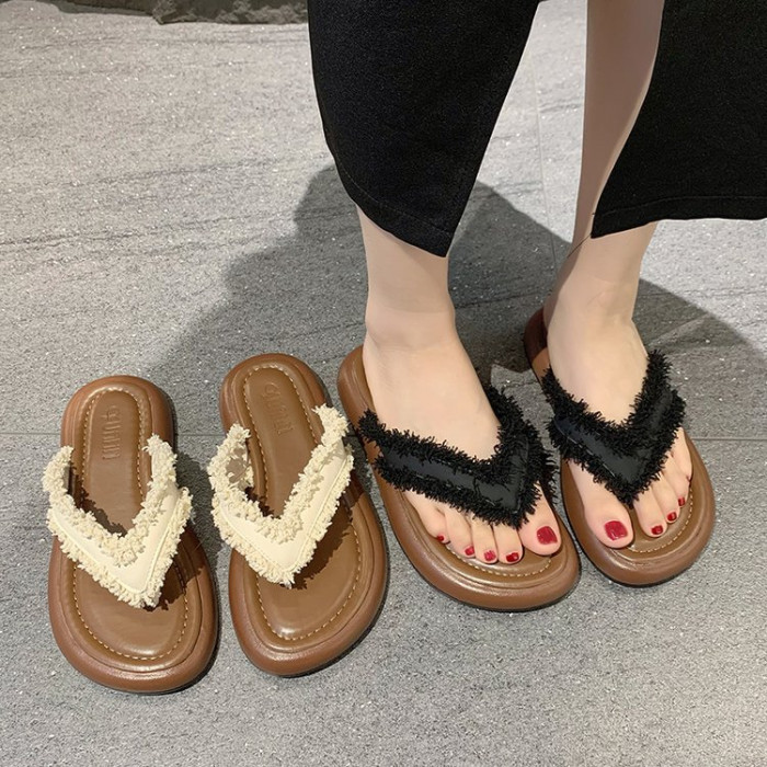 法式復古夾趾女士厚底流蘇拖鞋2025夏外穿人字拖休閒增高沙灘涼拖