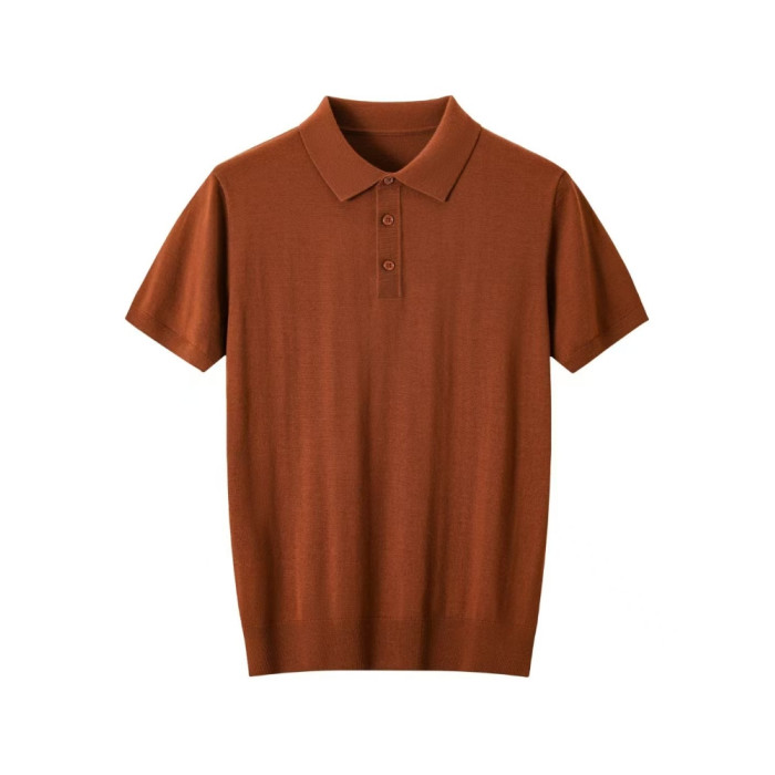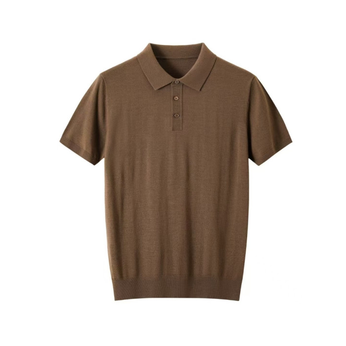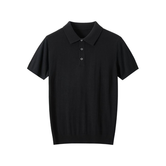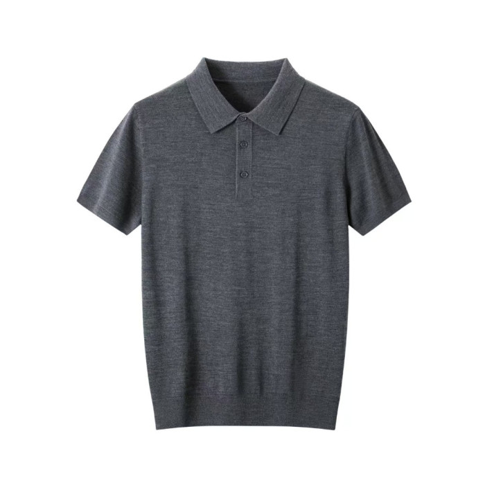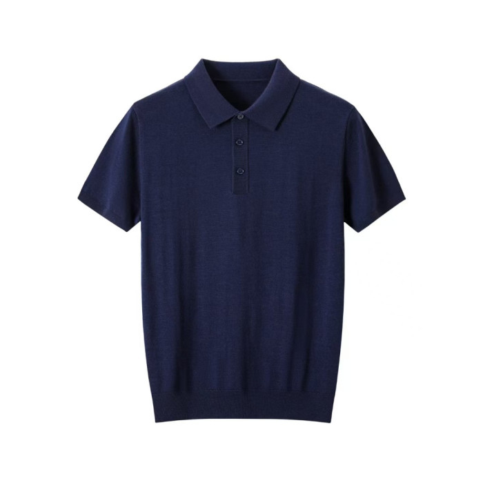 強烈推薦鄂爾多斯市精紡輕薄100精紡羊毛短男T恤翻領毛衣半袖