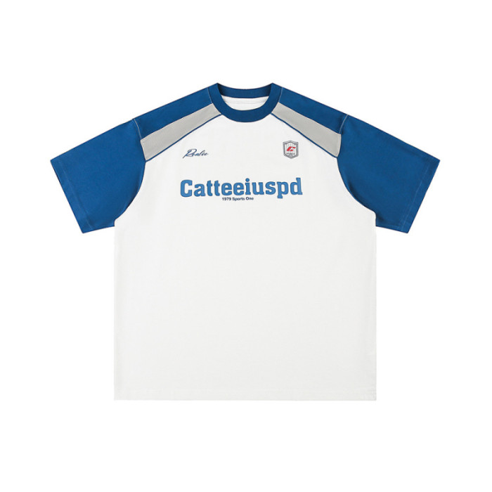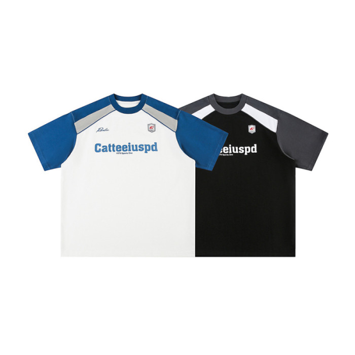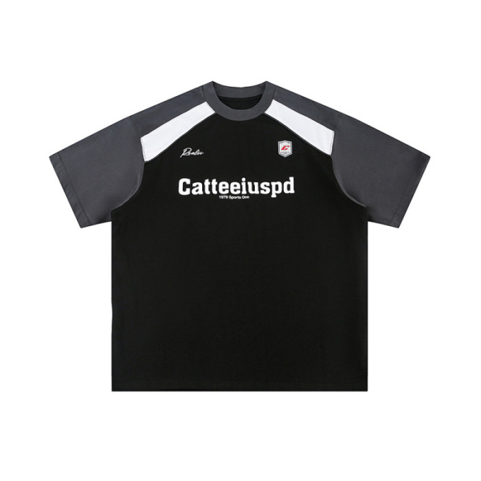 2025年新款CATTEE 美式重磅300g純棉運動拼色短袖男T恤夏季新款寬