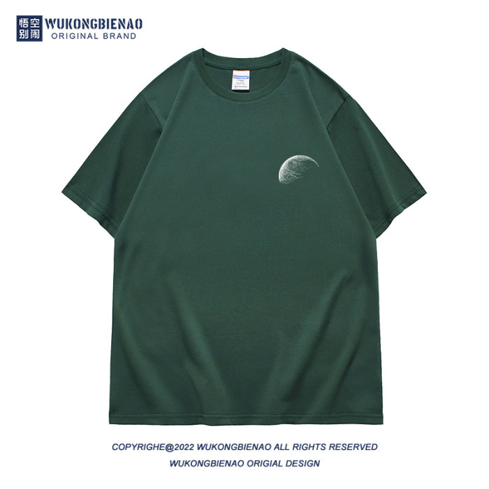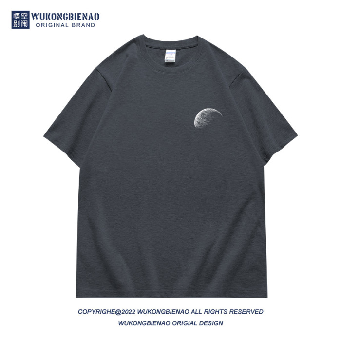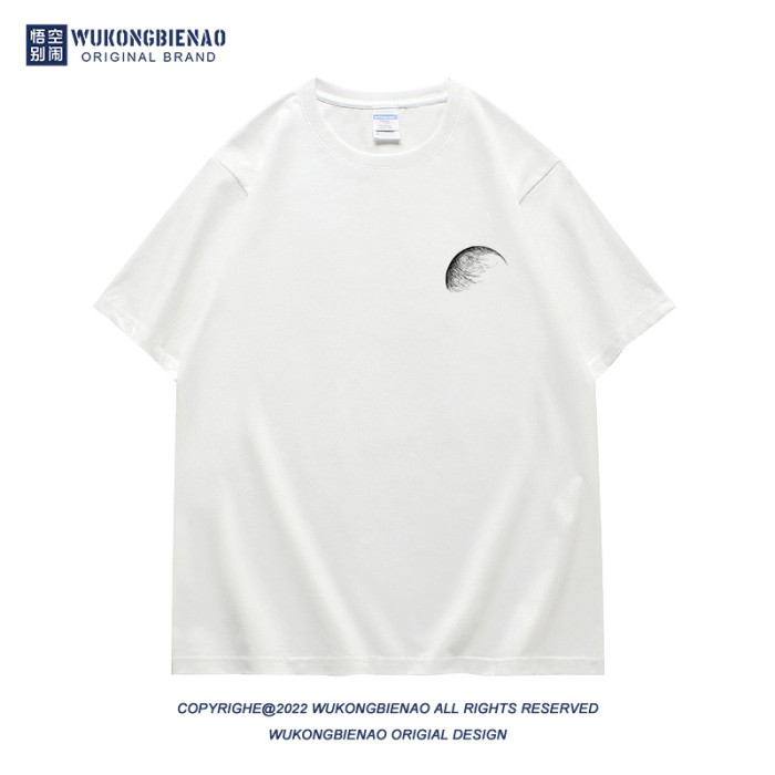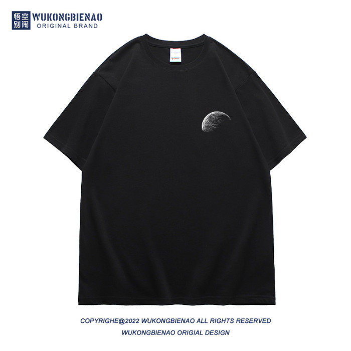 男t恤短袖潮牌ins純棉寬松2023夏季新款簡約百搭白月球短袖ins