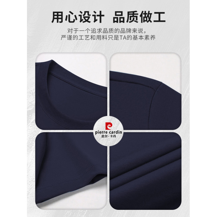 皮爾卡丹純棉短袖男t恤2025新款夏季圓領寬松男款體恤男士上衣服