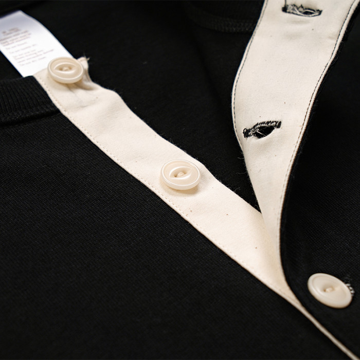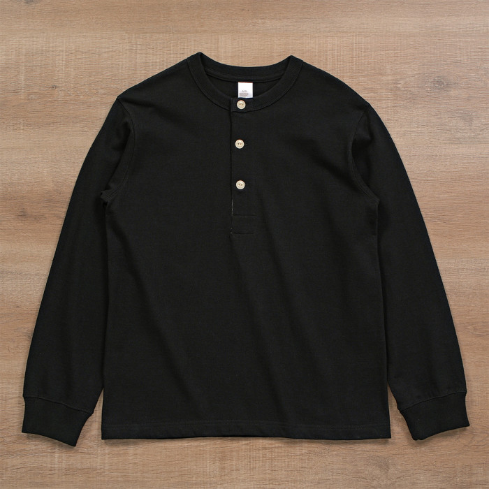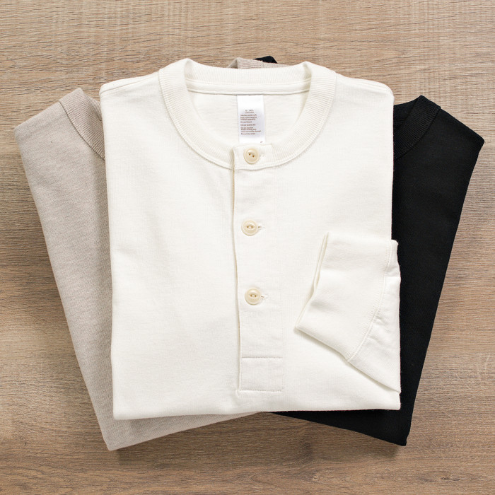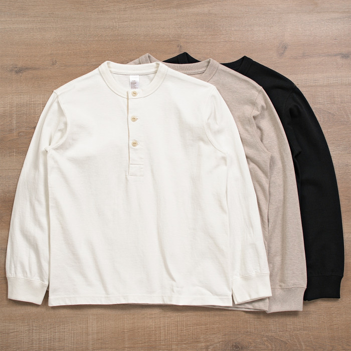 300g 老織機日系復古美式亨利領三本針重磅厚實純棉長袖男T恤哢嘰