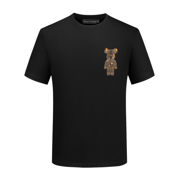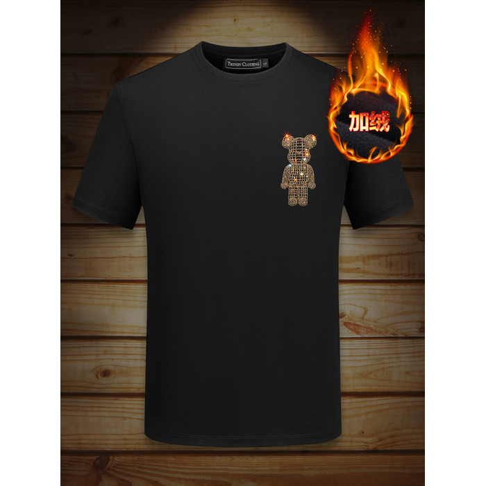 歐洲站加絨男t恤短袖燙鑽小熊圓領純棉衣服潮牌潮流簡約時尚個性