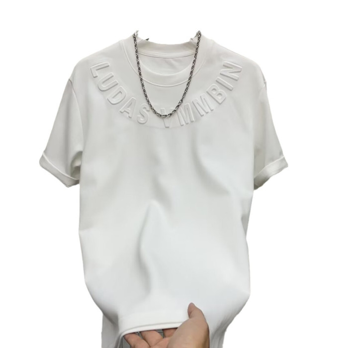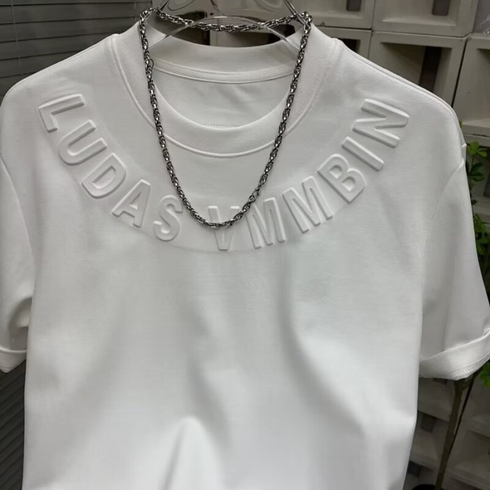 歐洲站2024上衣夏天新款潮流時尚字母鋼印休閒帥氣百搭圓領男T恤