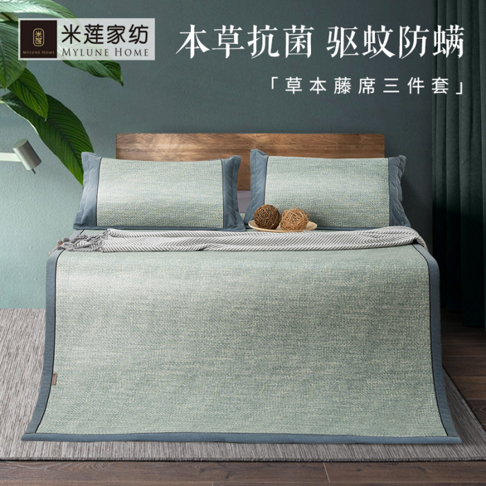 米蓮抑菌草本艾草藤蓆天然純藤加厚涼蓆嬰兒冬夏兩用夏季蓆子山姆