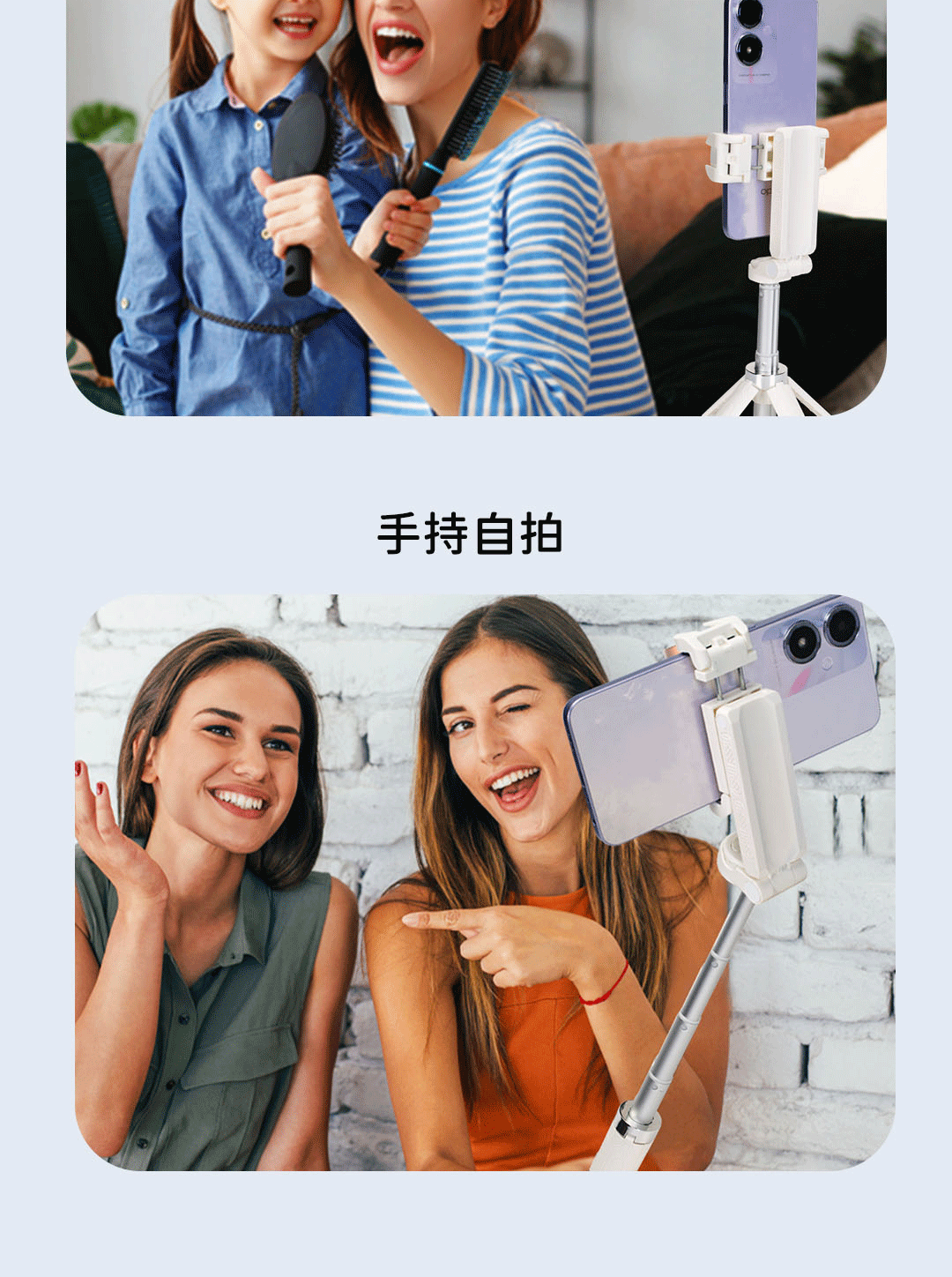 迷你自拍杆白色【雙燈】