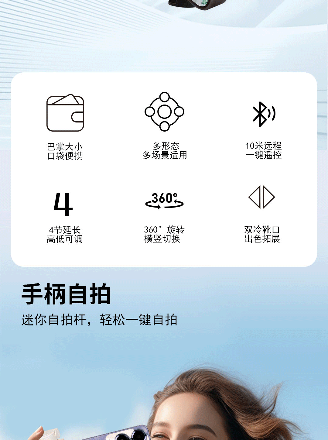 新款超迷你自拍桿旅遊可攜式通用落地四腳架手機拍照神器360度旋轉
