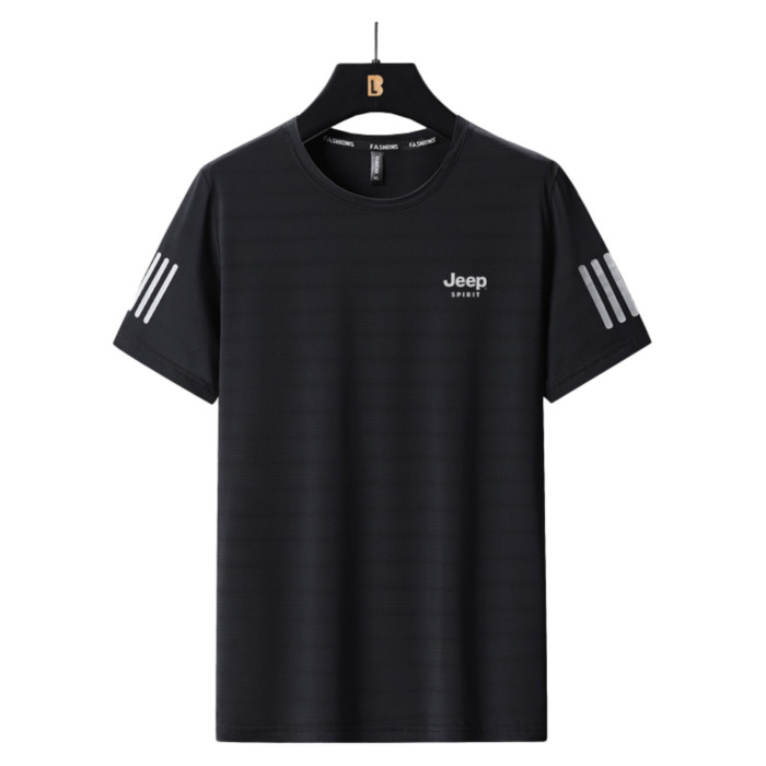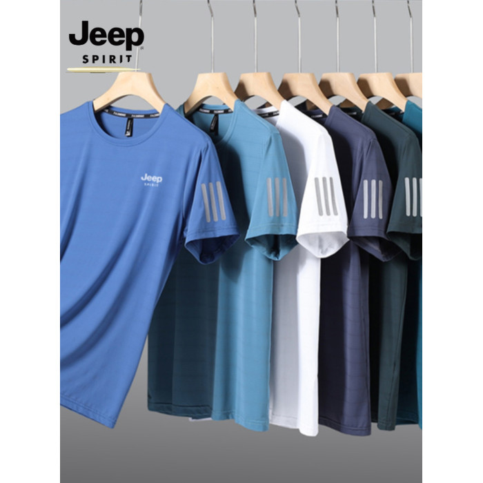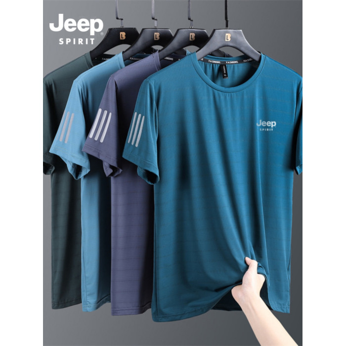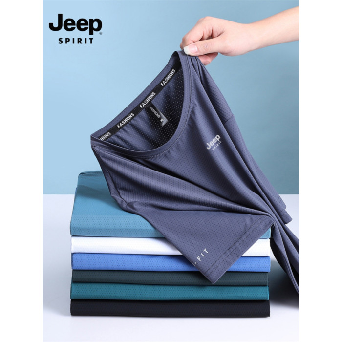 JEEP吉普速乾男t恤夏季薄款圓領寬松大碼戶外跑步網眼排汗體恤衫