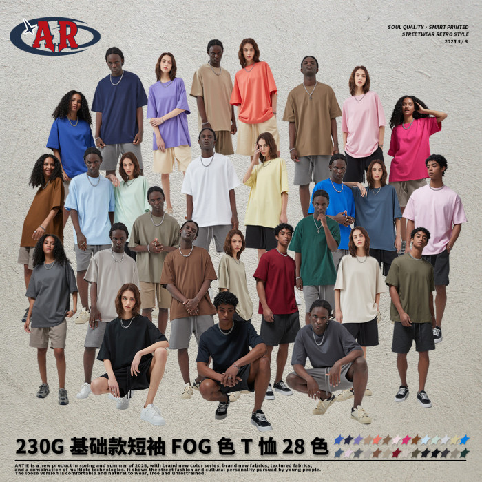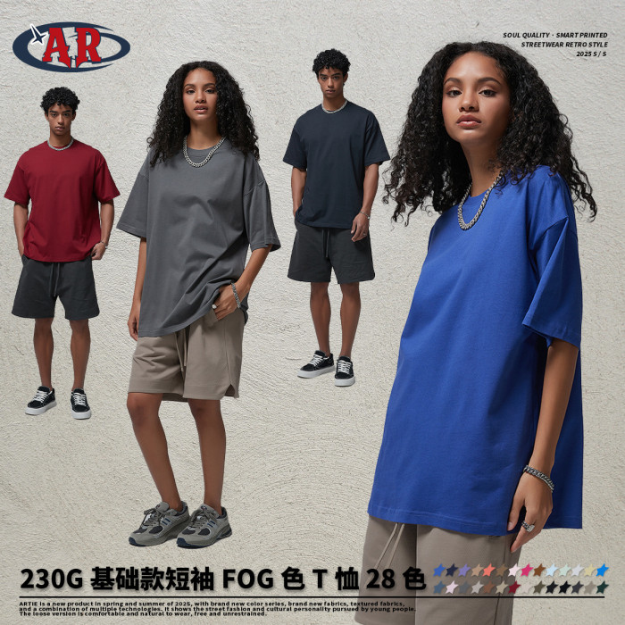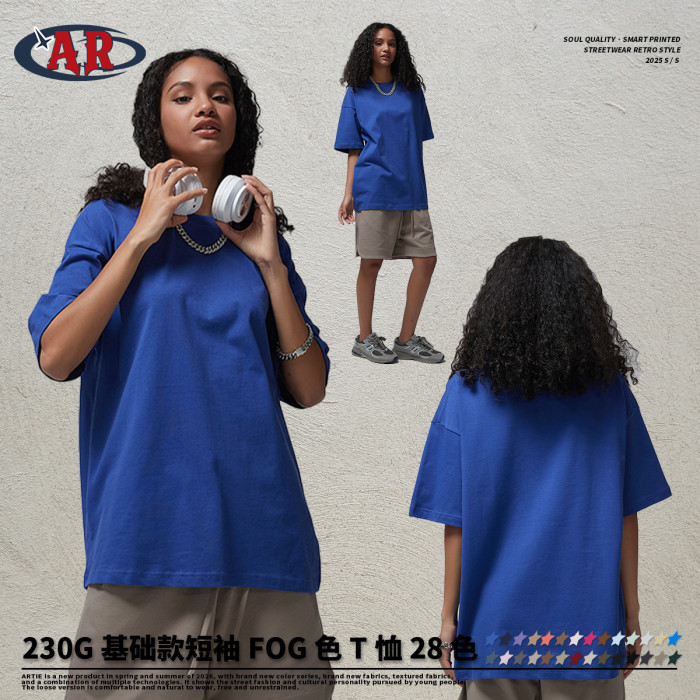 ar大碼男裝歐美潮牌230g雙紗純棉短袖男t恤純色空白男寬松t恤