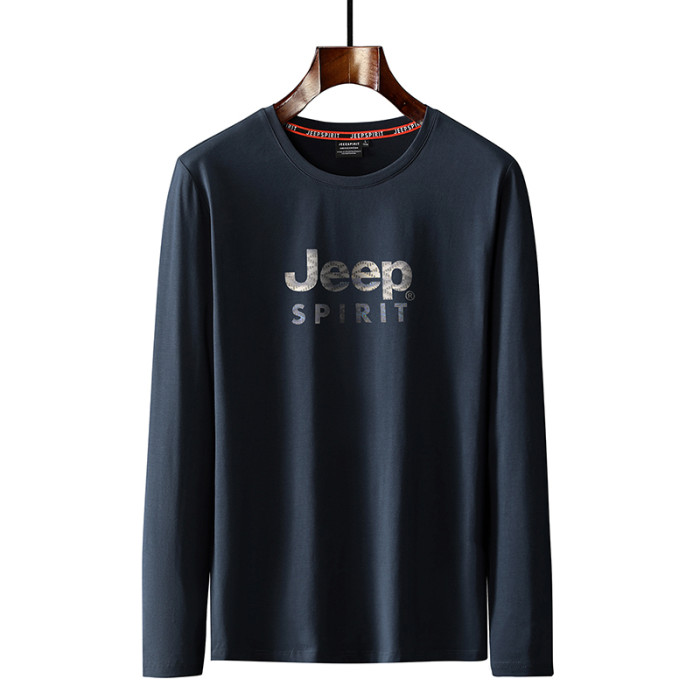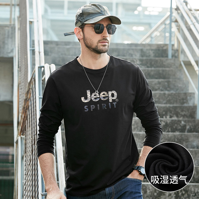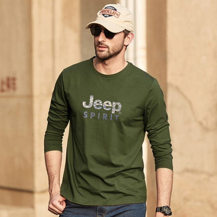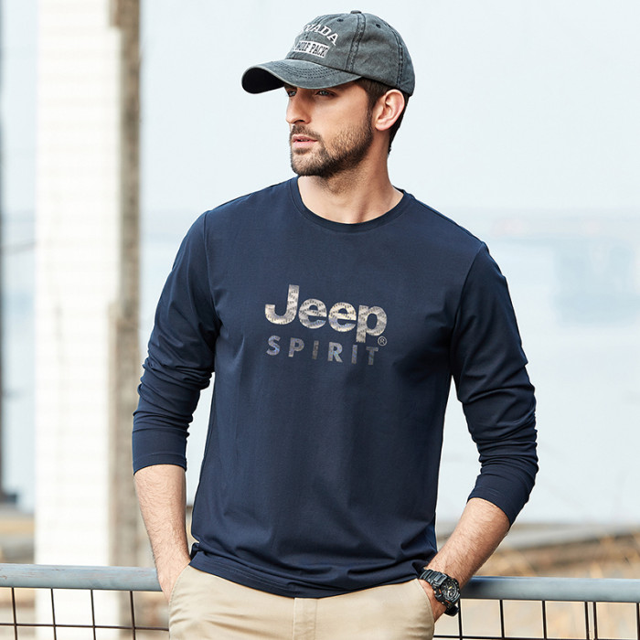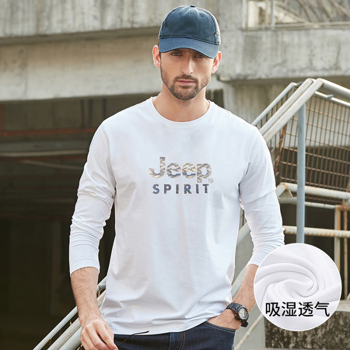 JEEP SPIRIT吉普男裝長袖T恤春夏季新款圓領寬松棉質t恤上衣男
