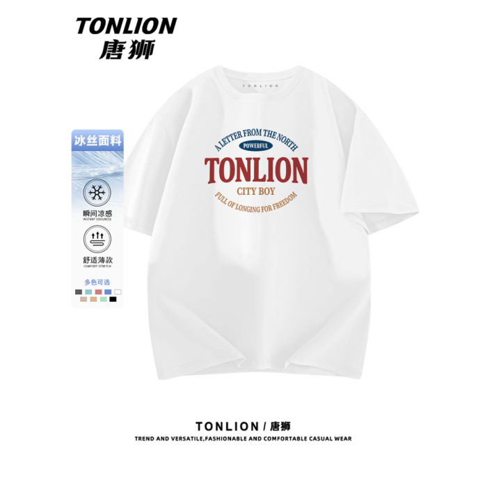唐獅短袖男t恤2025新款夏季時尚美式復古體恤青少年冰絲涼爽半袖