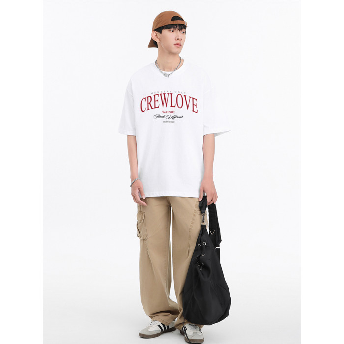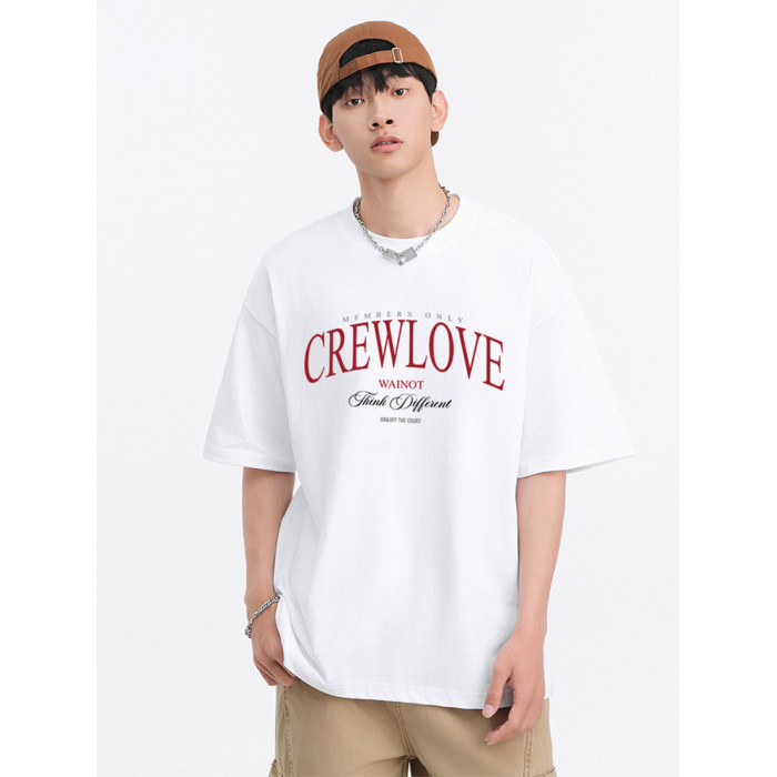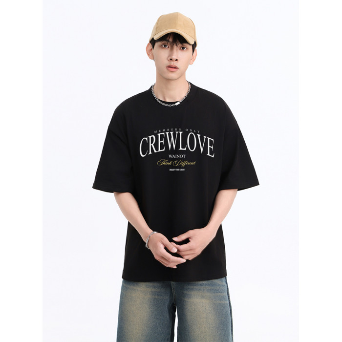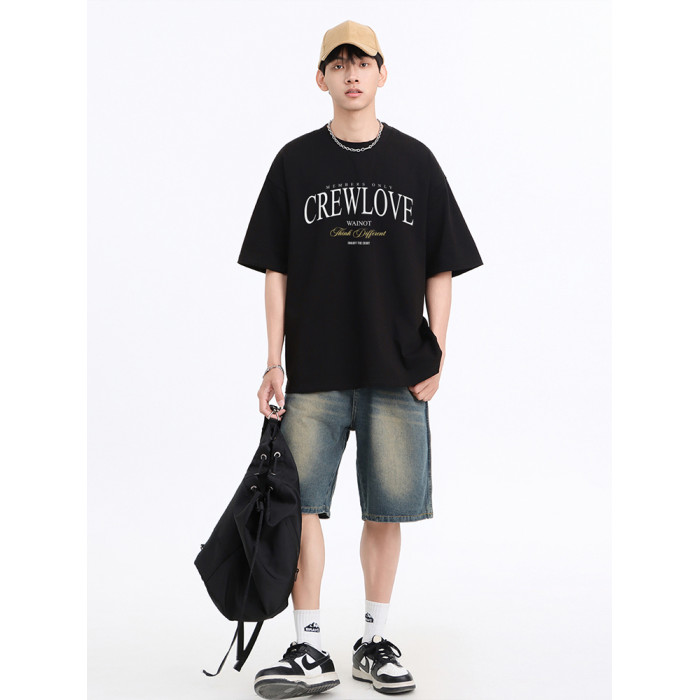 WAINOT280g重磅純棉圓領上衣男t恤短袖寬松美式街頭情侶半袖夏季