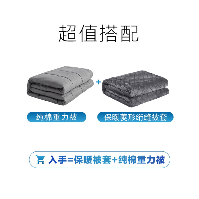 深藍竹纖維重力被+竹纖維被套+菱形保暖被套