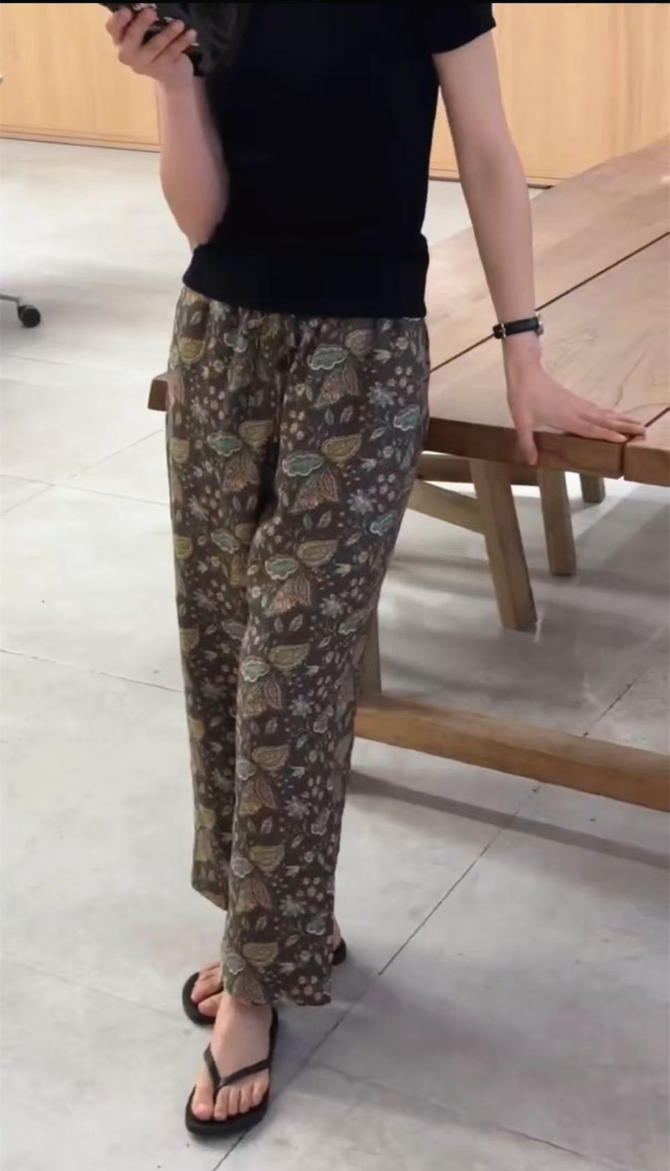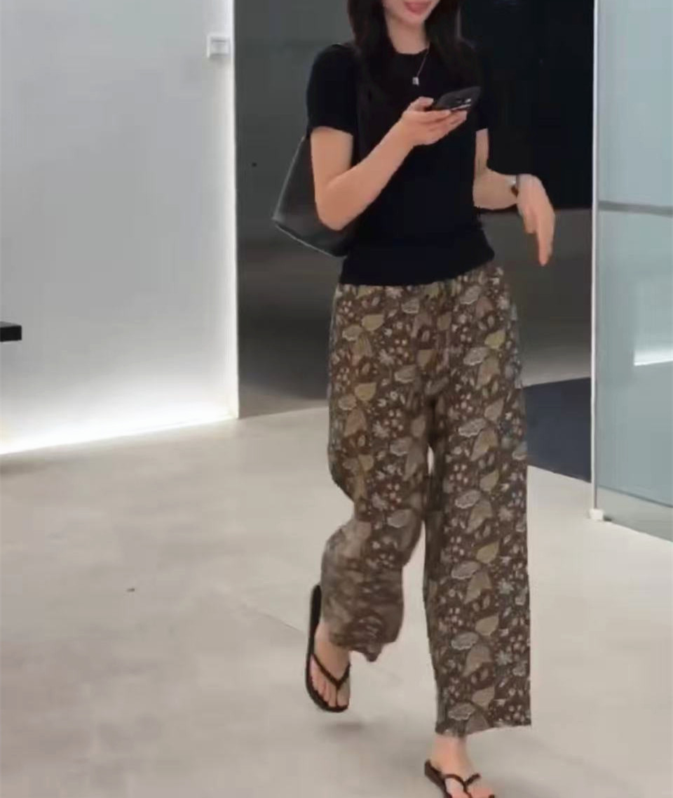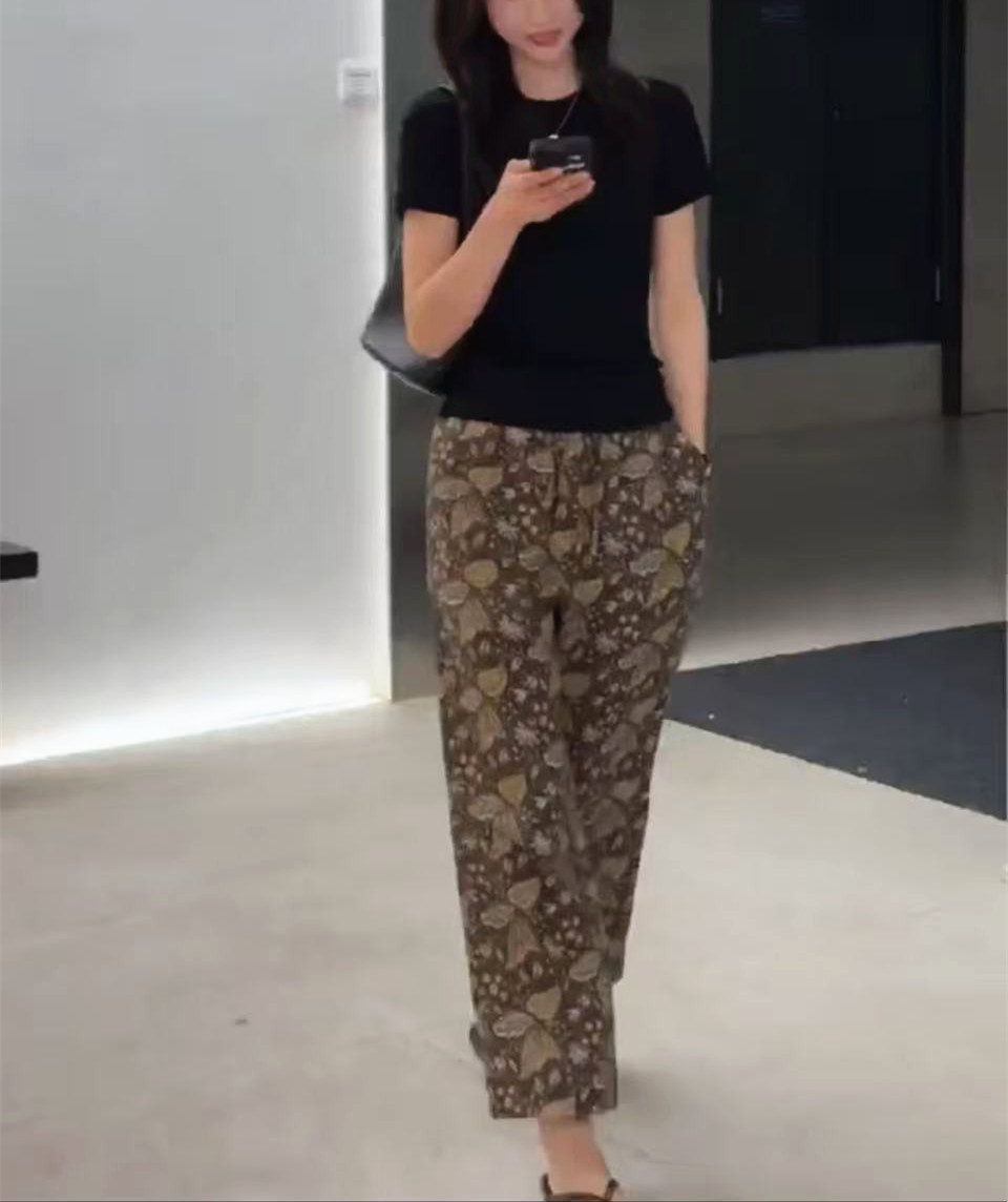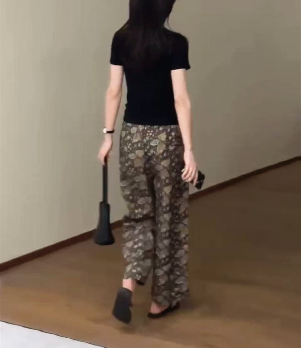 黑色上衣+印花褲子