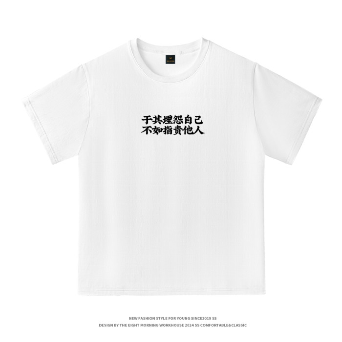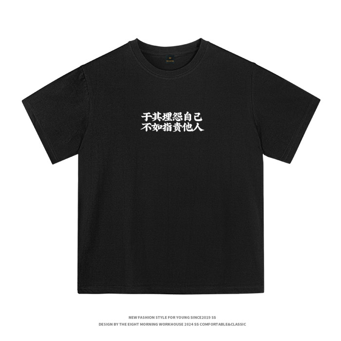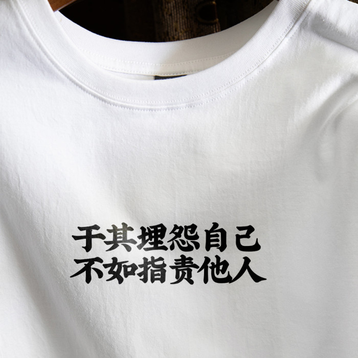 於其埋怨自己 不如指責他人 | 創意搞笑文字印花短袖男T恤2025夏