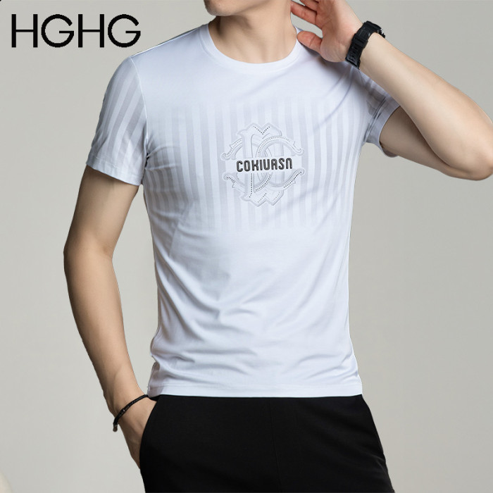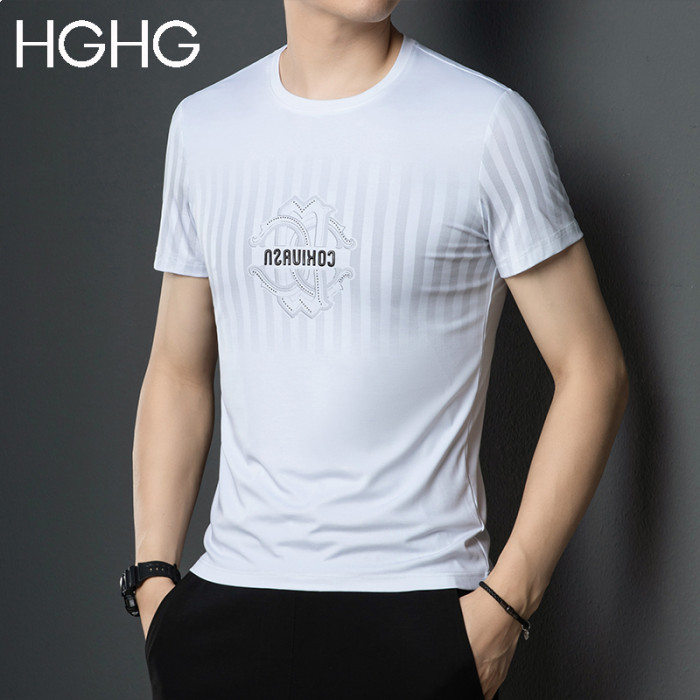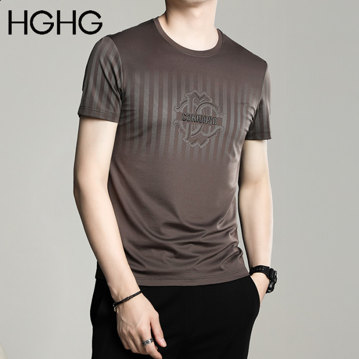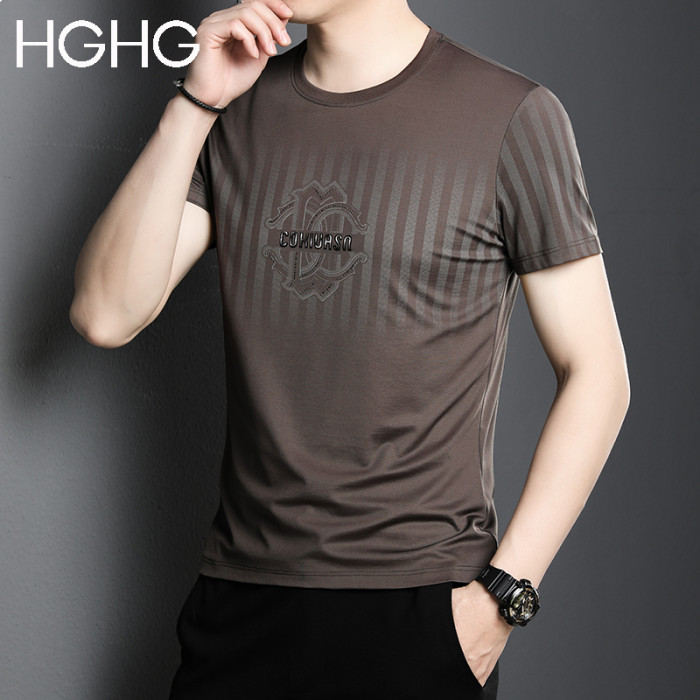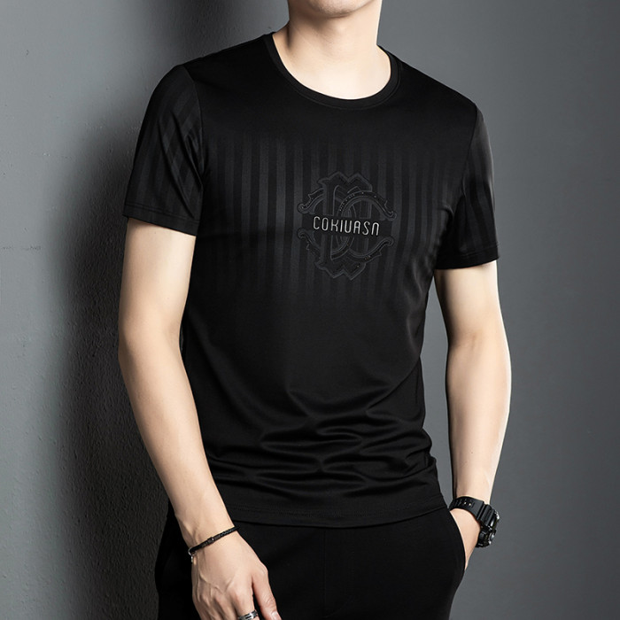 男士短袖t恤2025新款夏季圓領冰感透氣純棉薄款正肩冰絲男t恤男