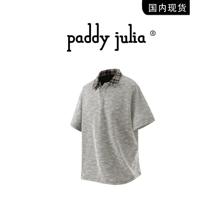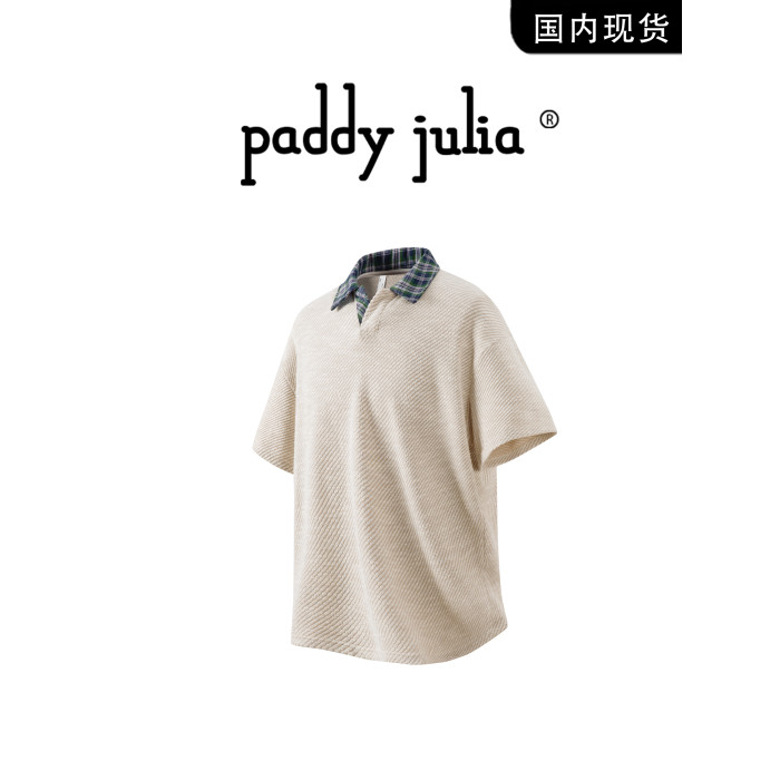 Paddy julia短袖男t恤夏季2025新款翻領格子POLO領休閒高級感上衣