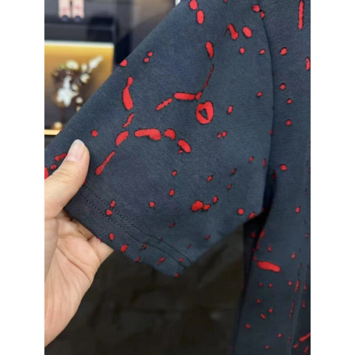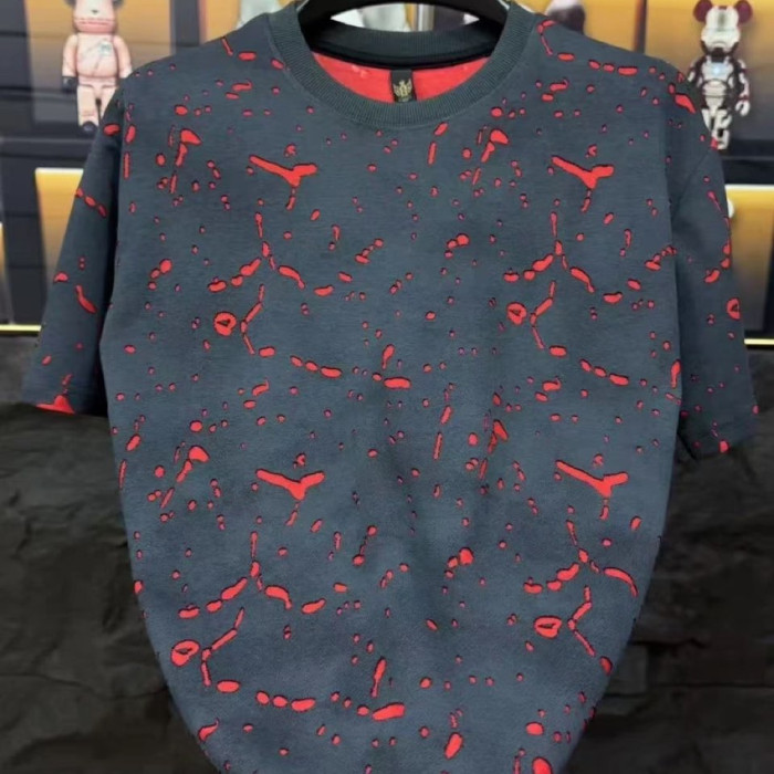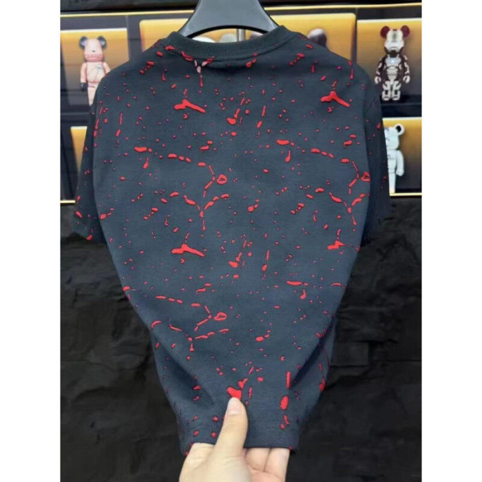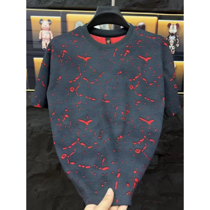2025年夏季新款短袖男士美式高街破洞男T恤寬松時尚休閒半袖上衣