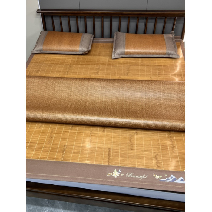 蘭珀高奢自用夏天涼蓆竹蓆1.8米1.5雙面可折曡碳化雙人床直筒蓆子