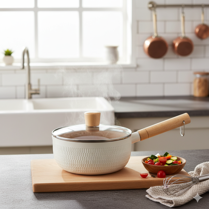【抗菌】日式雪平鍋白色-18cm帶蓋