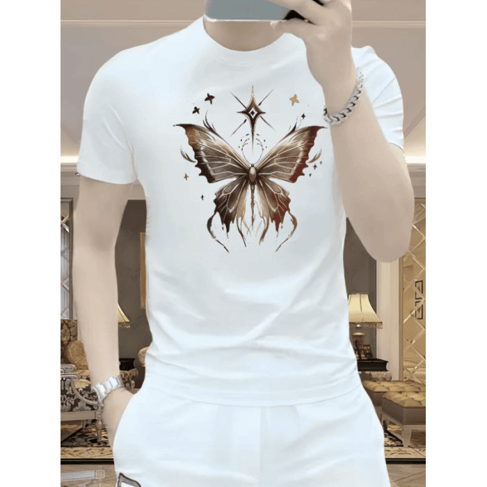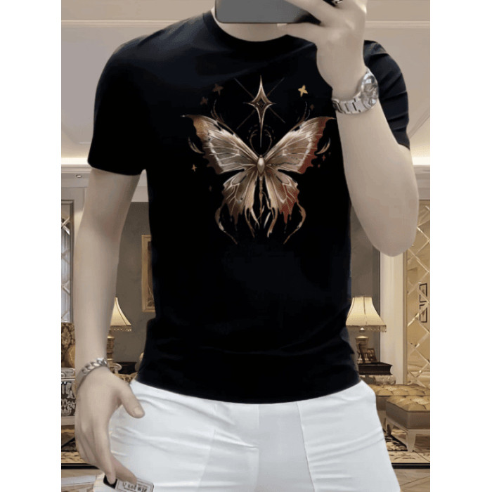韓版潮流印花短袖男t恤夏季時尚輕奢圓領帥氣修身半袖上衣