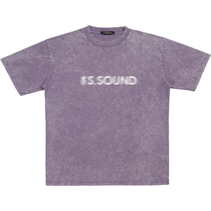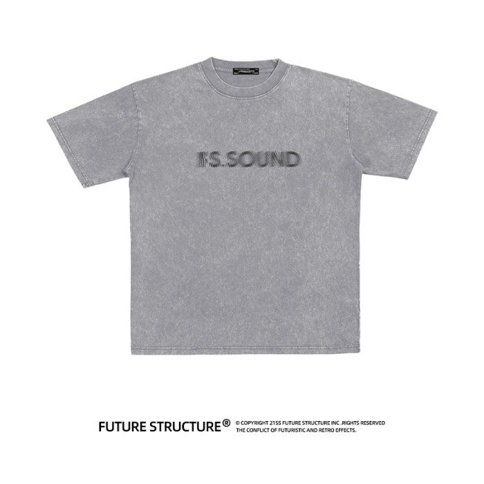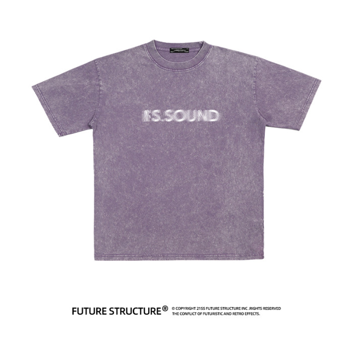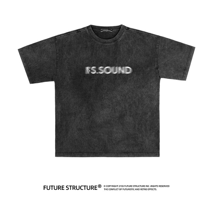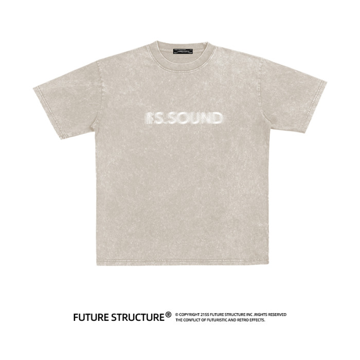未來結搆彩色洗水做舊款小領口男T恤寬松美式品牌印花短袖