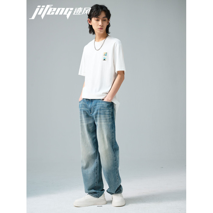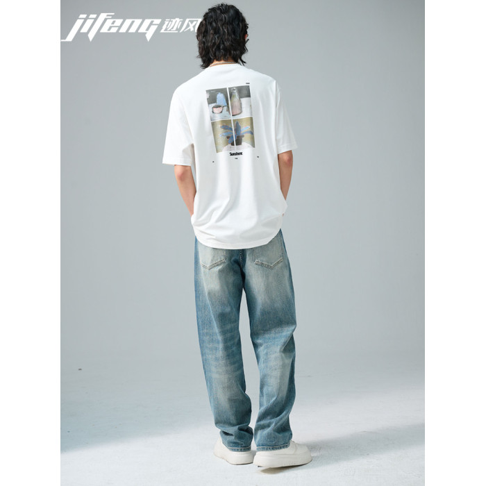 跡風25年新款短袖男T恤寬松圓領百搭休閒半袖155D223506