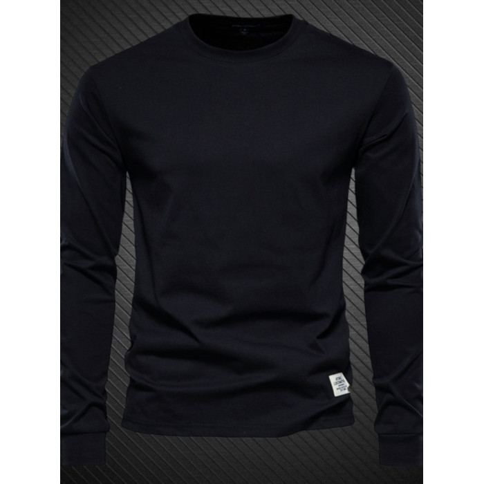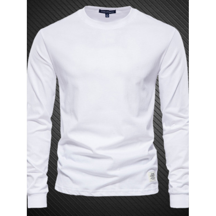 香港春秋季新款精梳純棉男t恤羅紋領口長袖打底衫圓領簡約上衣潮