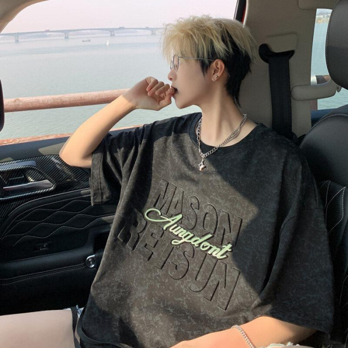 重磅美式高街短袖男t恤夏季2025新款寬松男生半袖青少年上衣潮牌