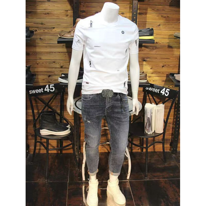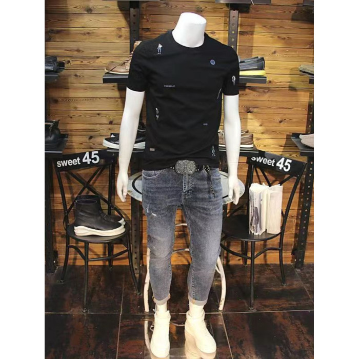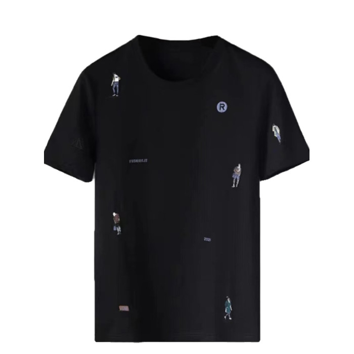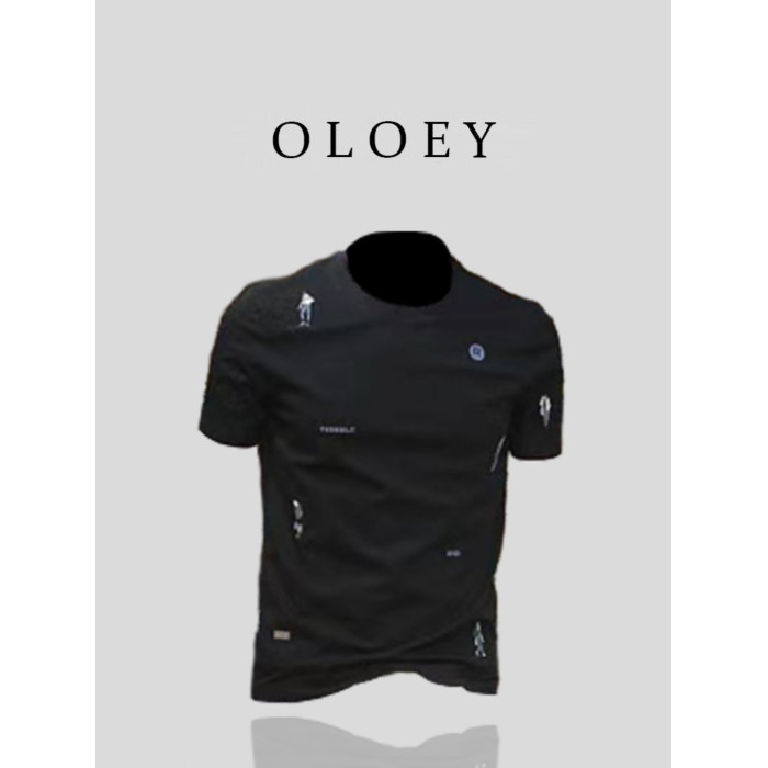 高級輕奢夏季絲光棉男T恤短袖2025新款個性刺綉修身青年帥氣半袖