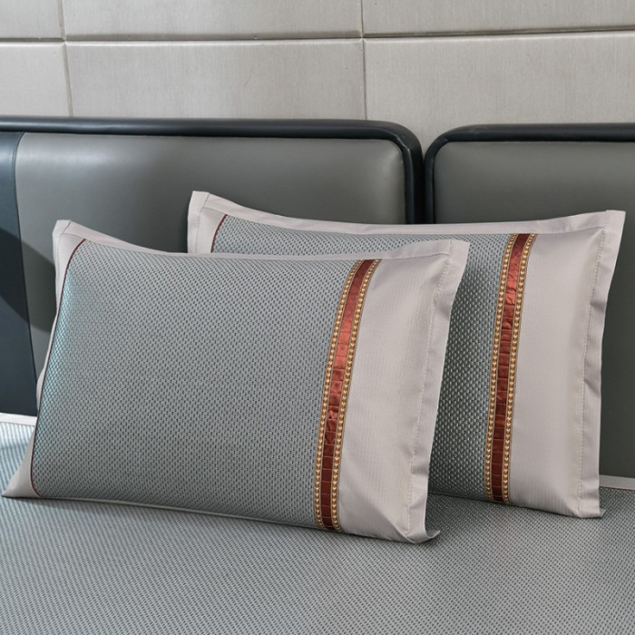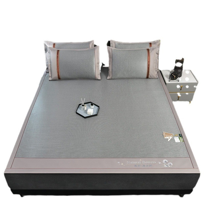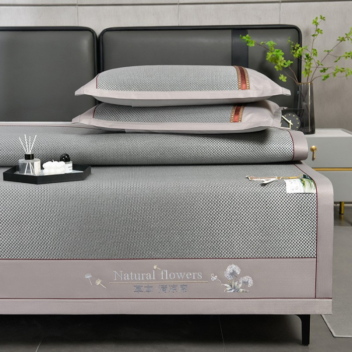 加厚款-綉球草本清涼冰藤蓆(提花淺灰)
