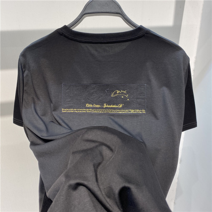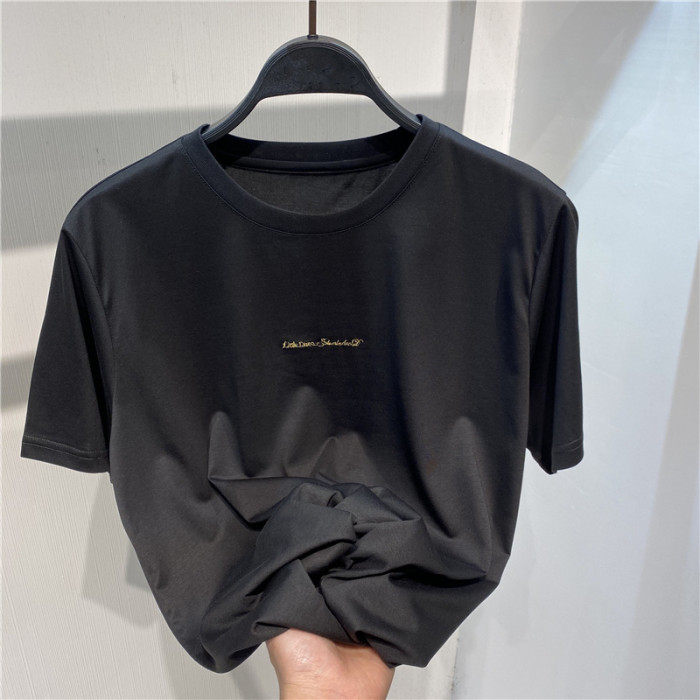 夏季新款圓領短袖金色刺綉時尚商務男T恤潮流男士潮牌