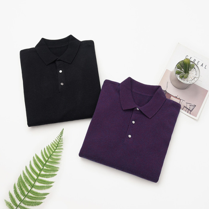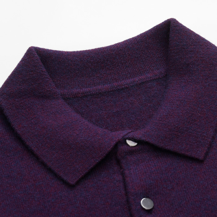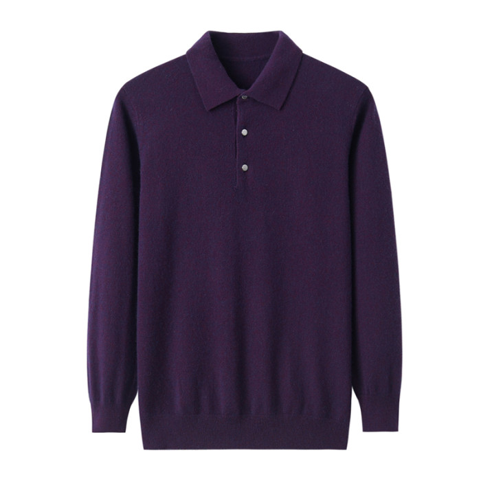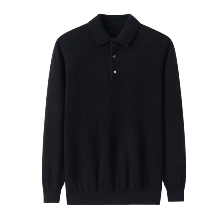 吉聖絨冬季純色男士羊絨衫翻領中青年套頭長袖針織polo衫男T恤衫