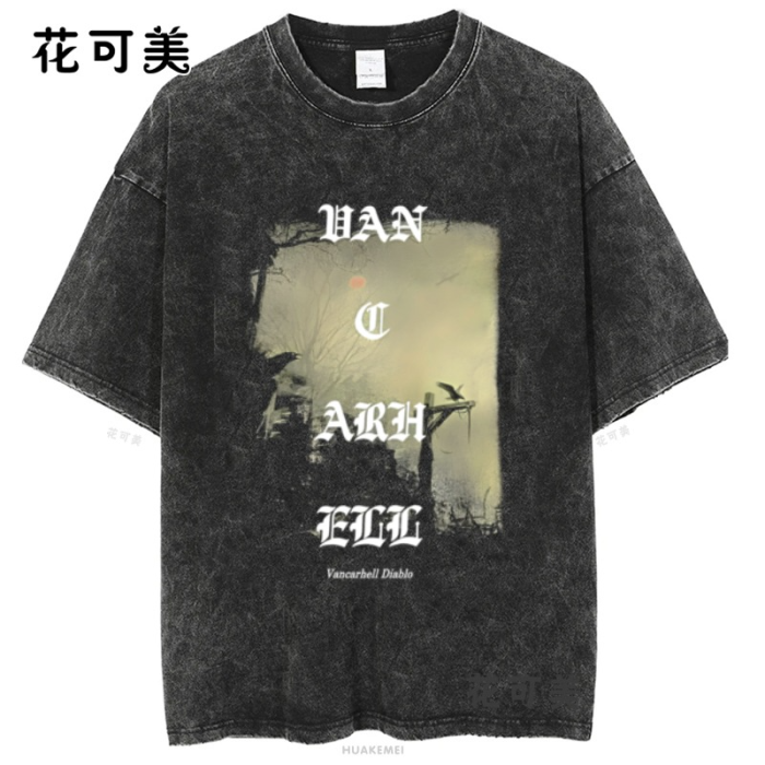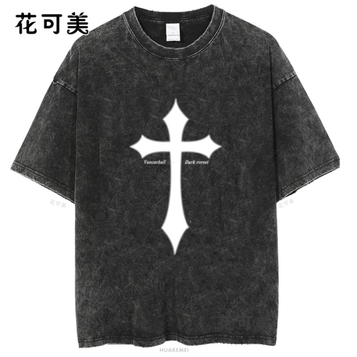十字架新款夏季歐美潮牌搞笑創意滑稽印花水洗做舊短袖男t恤