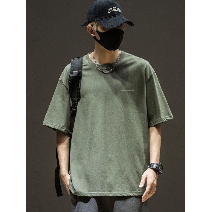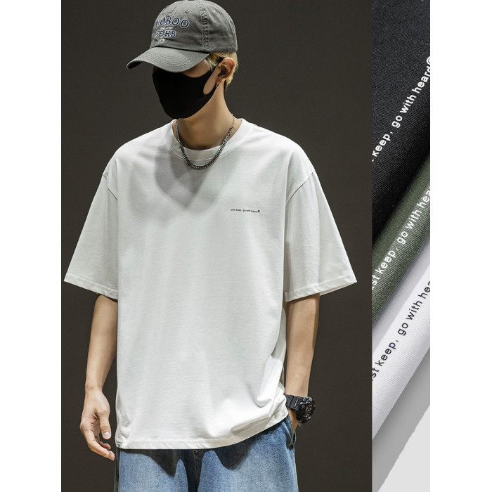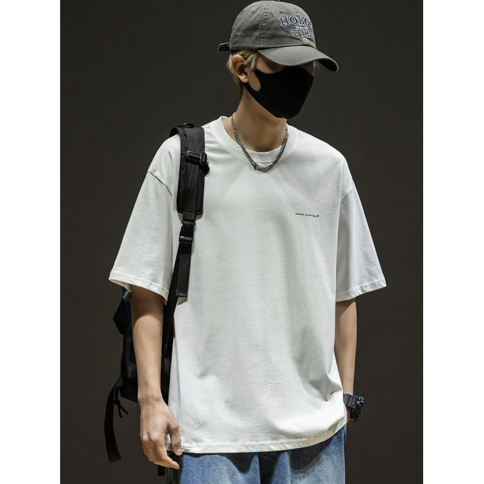 恩洛亞重磅男t恤短袖夏季美式寬松印花上衣2023新款半袖白色體恤
