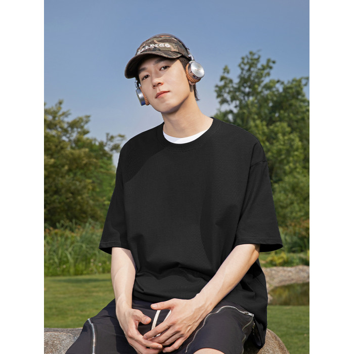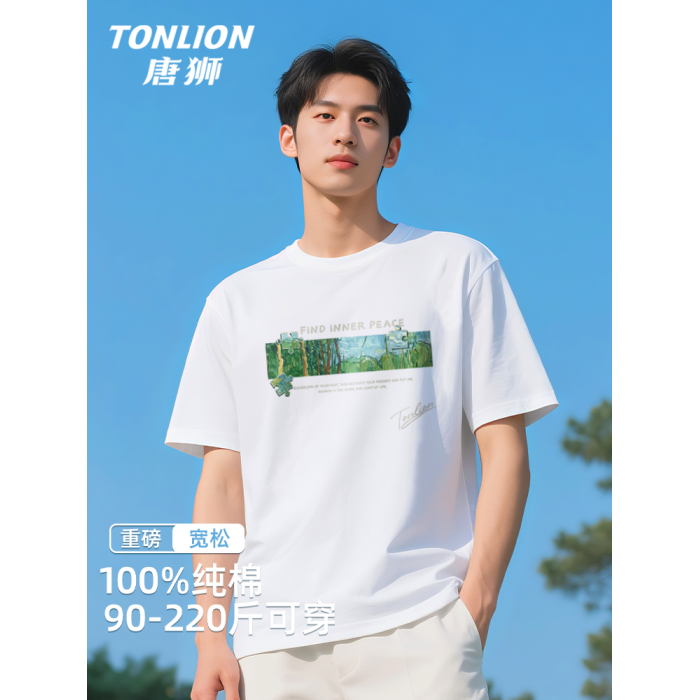 唐獅短袖男t恤2025新款夏季日系少年感體恤寬松休閒白色純棉半袖