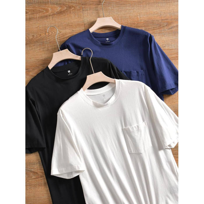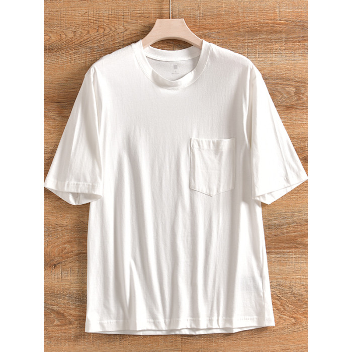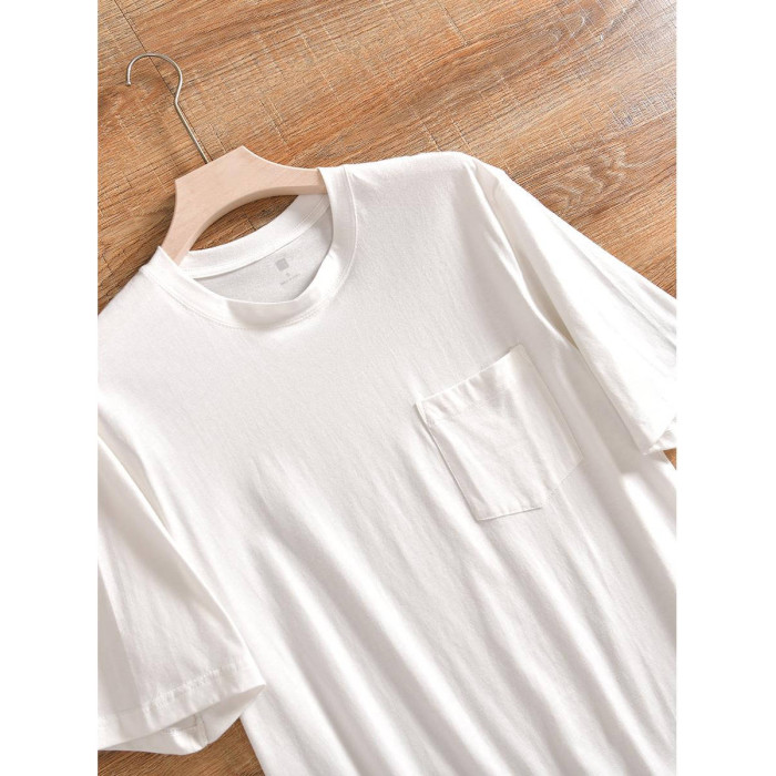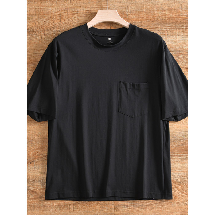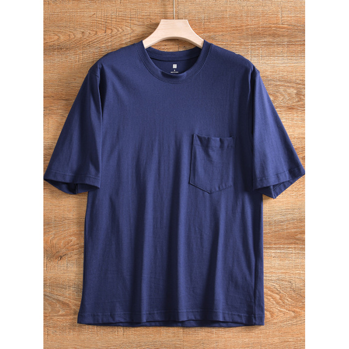日系小衆!100%純棉t恤男款圓領涼感夏季寬松休閒口袋短袖T恤男士