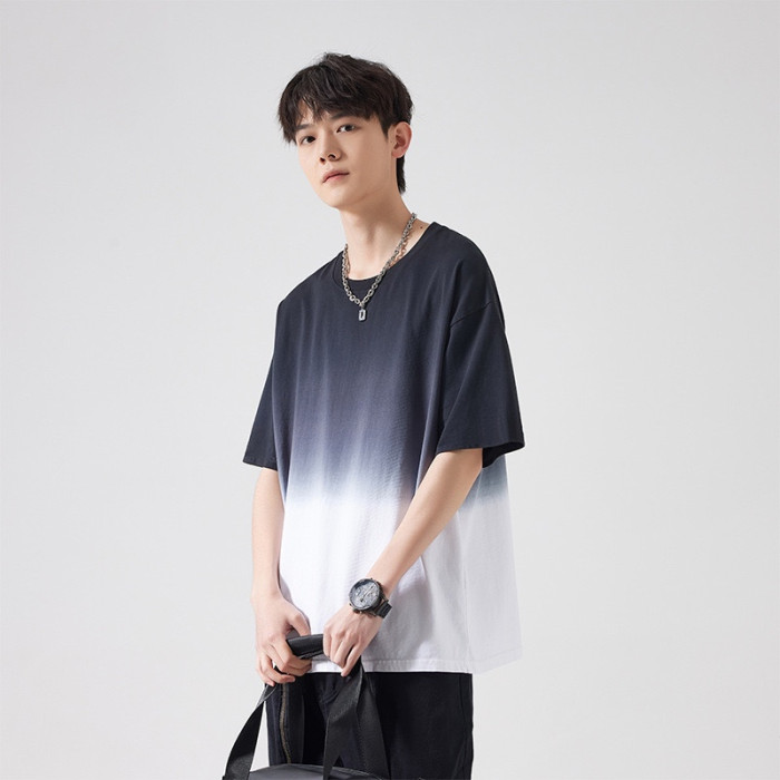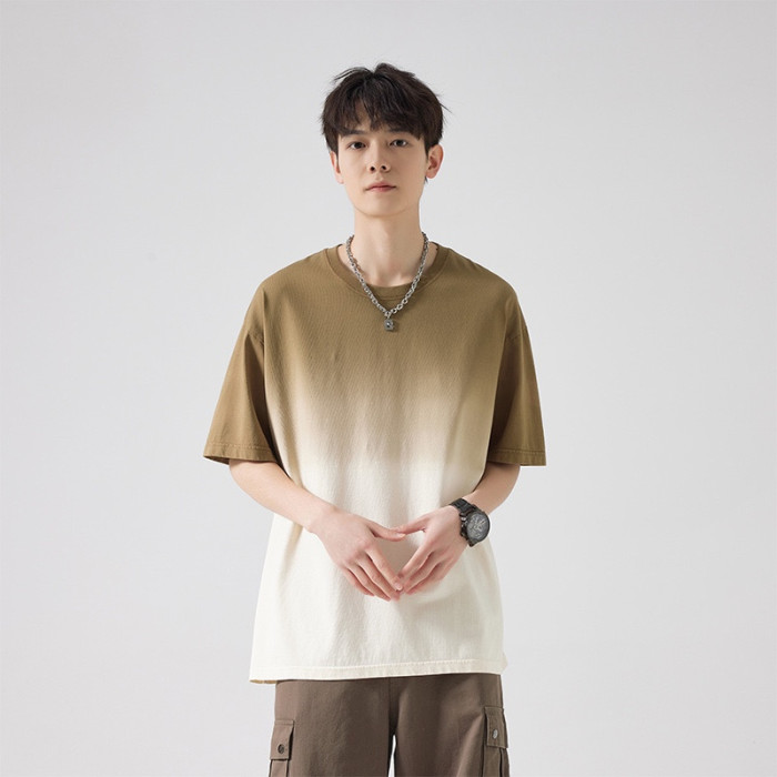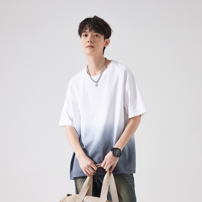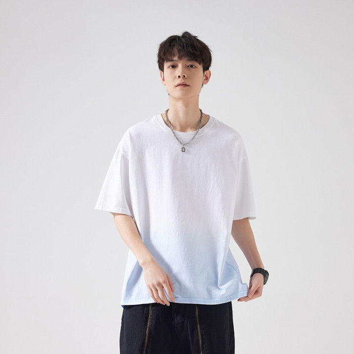 2024夏季漸變純棉短袖t恤男T恤韓版寬松青年學生百搭潮流短袖男款