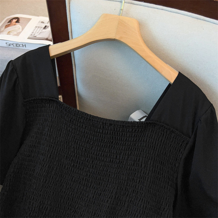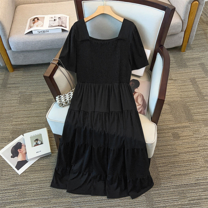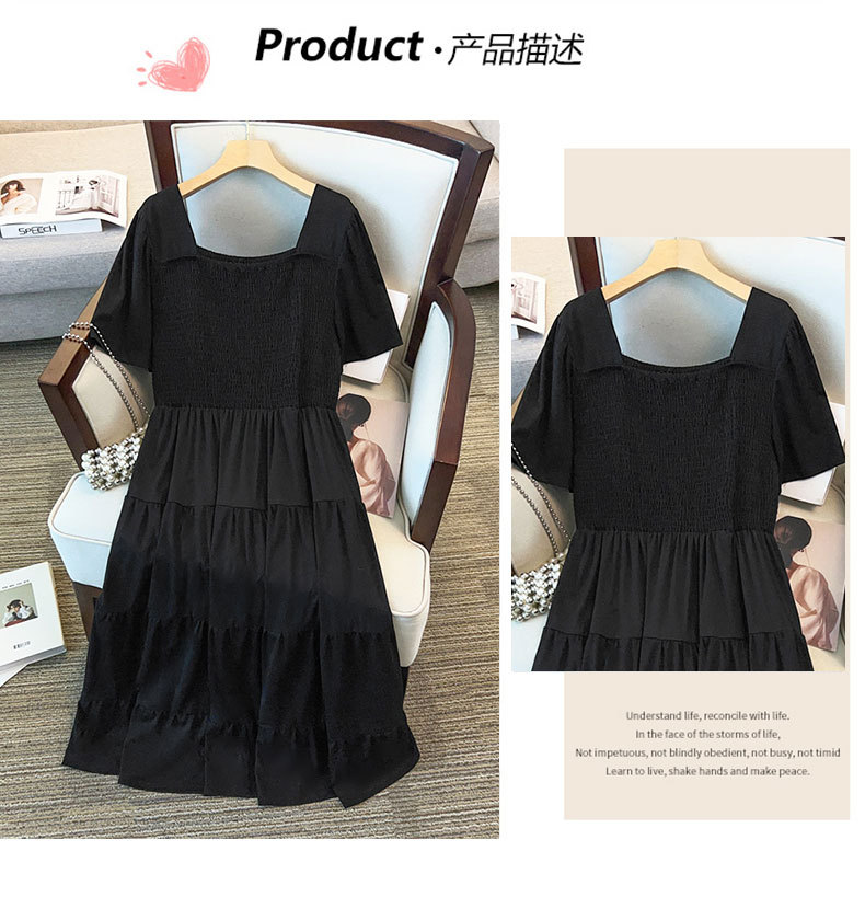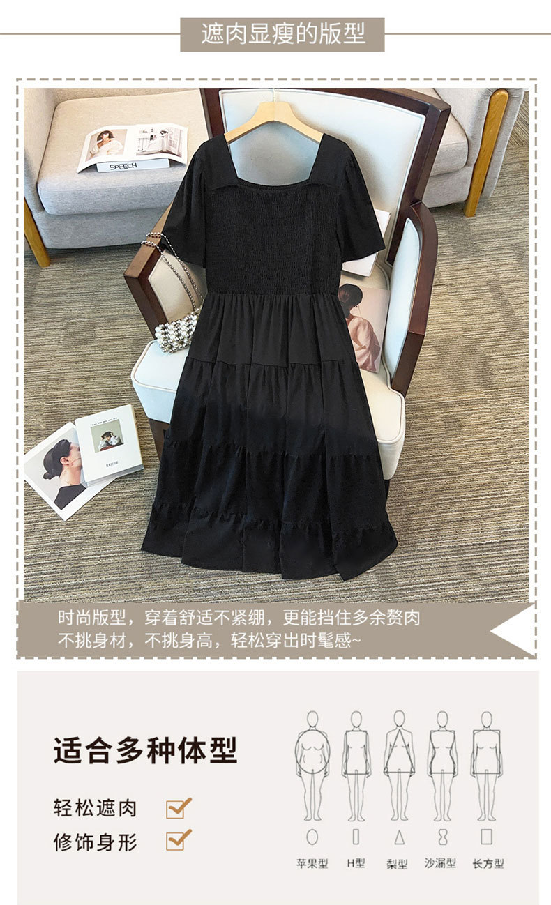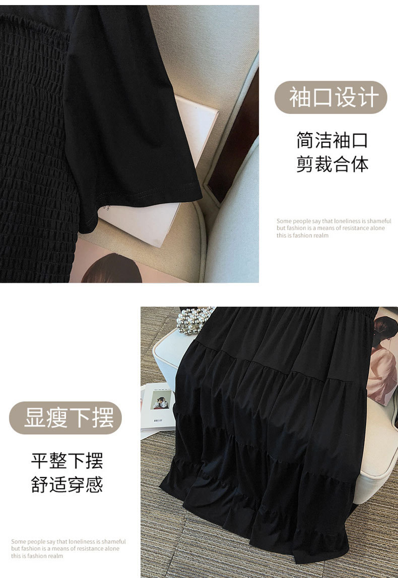 新款加肥加大碼顯瘦寬松短袖時尚長款連衣裙女200/300/350-9113