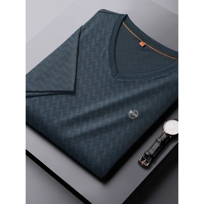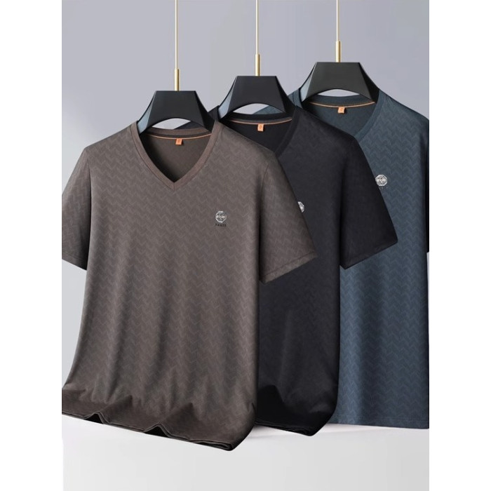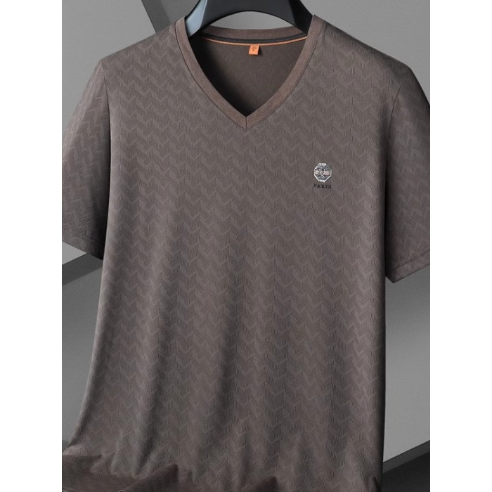 PALM CITY大碼冰絲短袖男T恤V領夏季簡約寬松速乾半袖休閒上衣潮