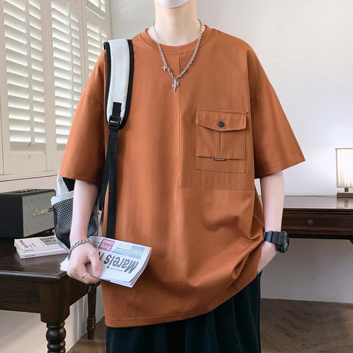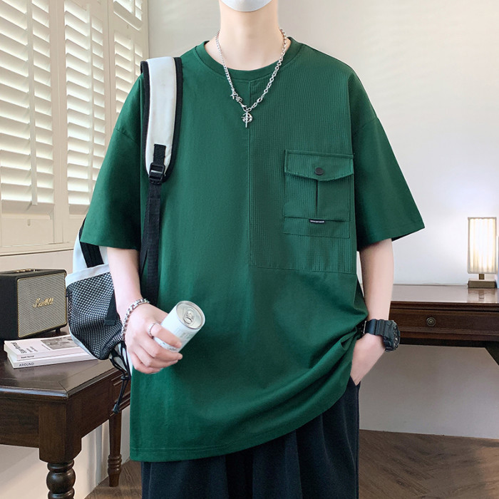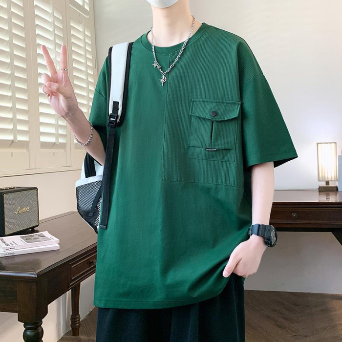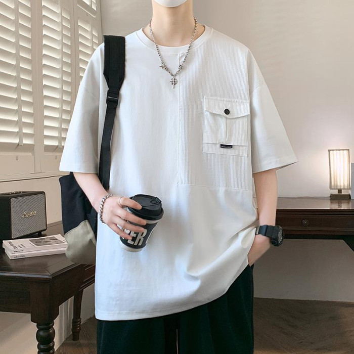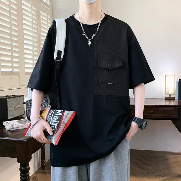 冰絲棉短袖男t恤夏季2025新款圓領半袖寬松上衣青少年五分袖體恤