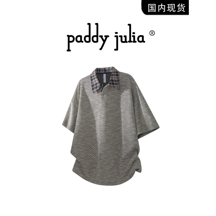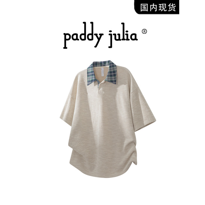Paddy julia短袖男t恤夏季2025新款翻領格子POLO領休閒高級感上衣