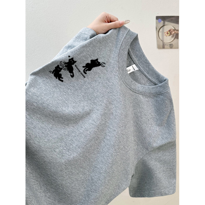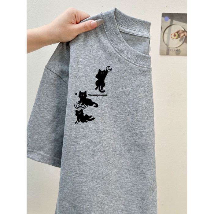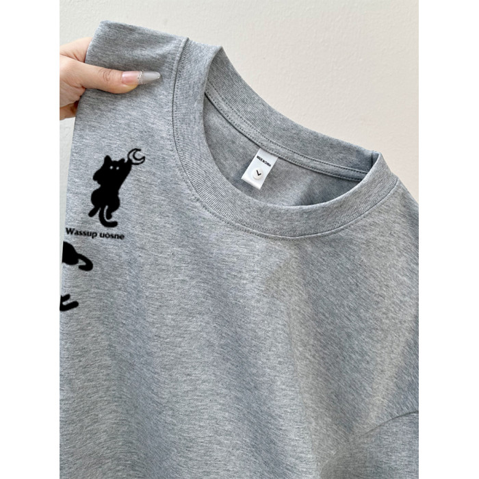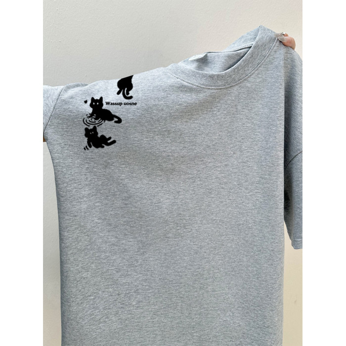 WASSUPUOSNE可愛手繪線條小狗插畫印花圓領短袖男T恤寬松休閒半袖