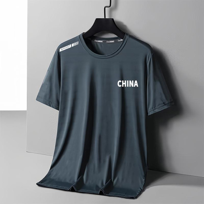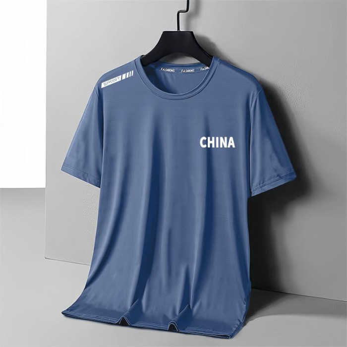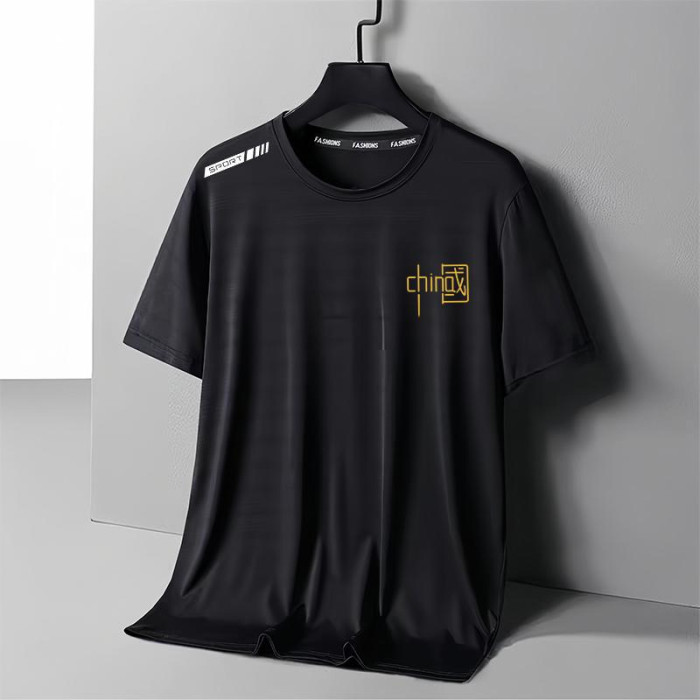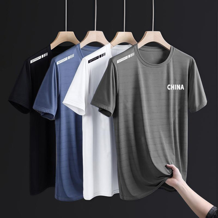 夏季男士短袖t恤冰絲透氣短袖男T恤衫圓領打底衫休閒百搭帥氣短t
