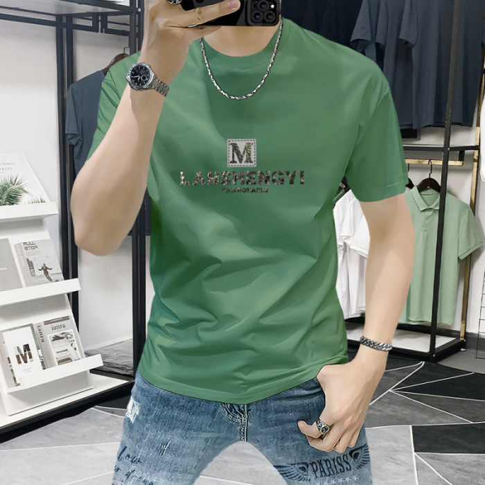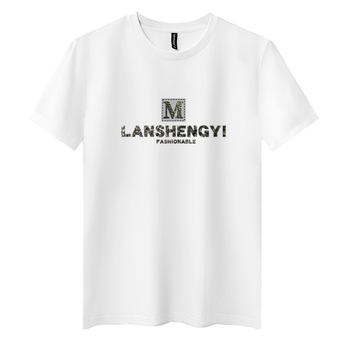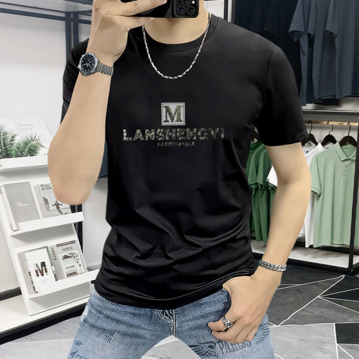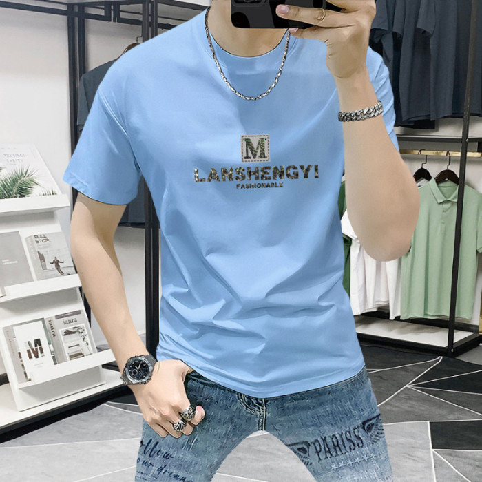 藍晟依短袖男t恤夏季新款字母印花圓領半袖上衣修身百搭打底衫男T
