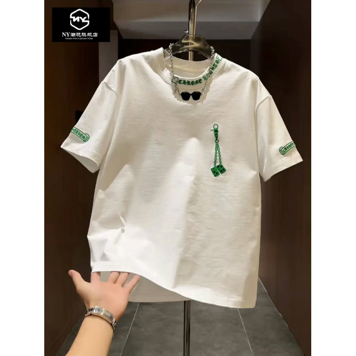 NY高級刺綉短袖男t恤2025新款夏季百搭圓領半袖時尚休閒短袖男款